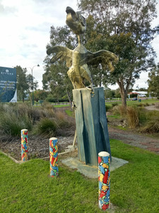The Southern Entry Statement is best accessed heading north along South Western Highway as you can pull in to the parking bay and hop out to see the kangaroo. If you then turn off at Clondyke Drive you can park at the entrance park and wander down for a closer look at the cockatoo. If you venture into this subdivision you will find the lovely Ridge Park and Playground.