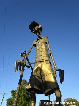 Back in town heading north along South Western Highway on the eastern side from Beenyup Road you will come across the Returned Serviceman honouring the men who returned to Byford after the war, Sister Wossley and child representing the Child Health Clinic and Traffic Inspector Charlie Knox who would stand at the corner of South Western Highway and take down the registration plates of drivers he considered to be speeding! Cross back to the starting point at Dome Cafe.