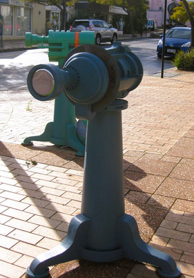 When you arrive at Preston Street there are a number of shops including some cheerful cafes to stop for a coffee. Wandering down Preston Street you will pass Nasi Lemak Corner and you can find a playful mural acknowledging Indonesian culture on the western façade. Right next door you can't miss the pink art deco Cygnet Theatre which has been operating since 1938. Make sure you continue past to check out Alfred Hitchcock on it's southern wall. Along Preston St the camera and canister artworks reflect the history of the cinema. These artworks are interactive and you can rotate the films and projector reels to see historical and contemporary etchings of Como, including images of the river, the jetty, trams, street theatre and maps.