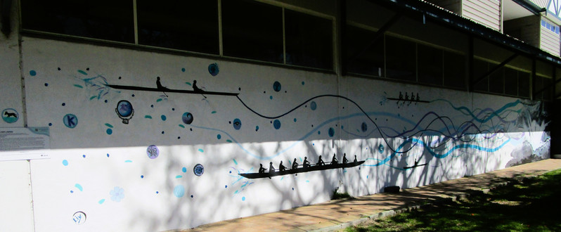 When you get to Canning Bridge walk under the bridge and look along the wooden piers and struts. The underside maintenance walkway has been decorated and painted and is really colourful. Take the time to walk across the bridge and have a look from both sides.