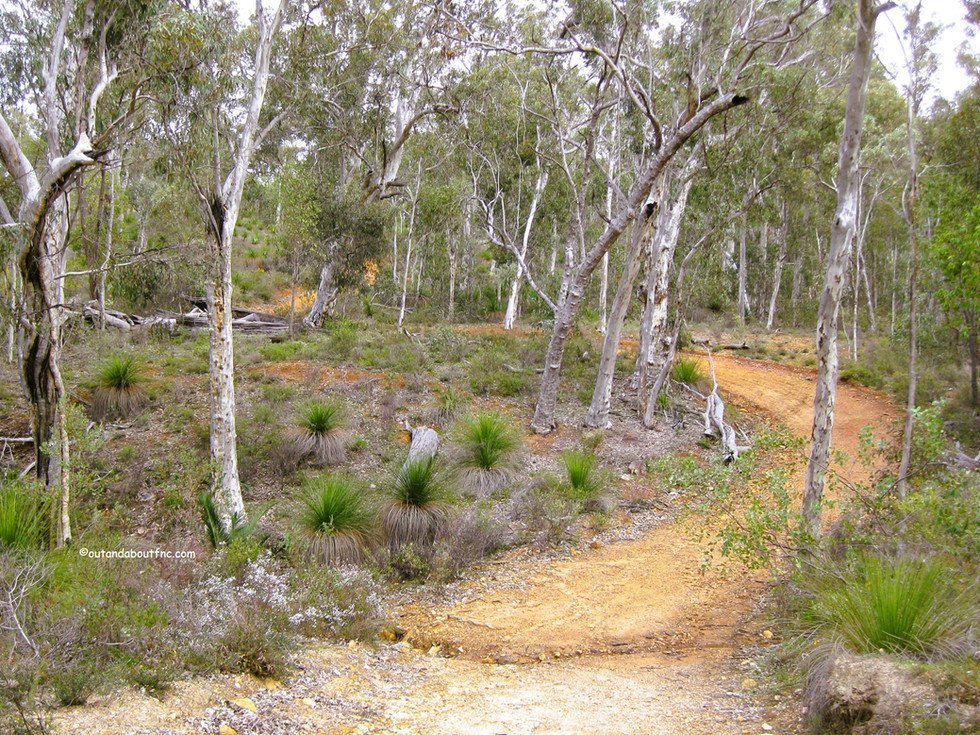 On returning to the crossroad at trail marker 2 we turned up the hill and walked the short loop trail through wandoo and jarrah forest back to the picnic grounds.