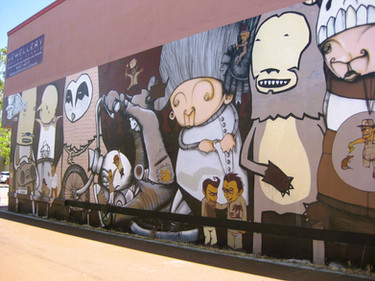 At the water feature sculpture in Central Walk head west along the laneway for another mural. Check out the artwork on the Court Building and then take the laneway behind Sanori House and next to Varsity to spot the Jeremy Lane mural. Don't forget to keep an eye out along the way for the children's artwork embedded into the pavement.