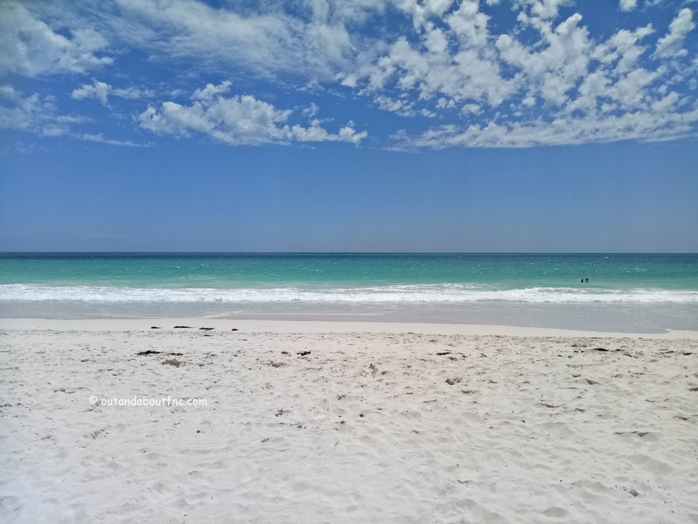 The beach stretches over 3km from Whitfords Beach to the south all the way to Mullaloo Beach North where the beach peters out below the 10 m high calcarenite bluff. There are a few landmark memorials located on the bluff and you can climb up and wander around for a closer look and also for the stunning views south back down the beach.