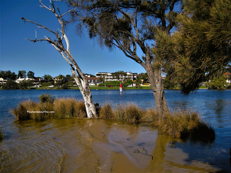 The Salter Point Lagoon Loop Trail is up to 500 m long but accessibility depends on water levels. The trail is narrow and sandy on the eastern side of the lagoon. We followed it in but found the path flooded at the river end. It looks as though the trail might loop around to the point when the water levels are much lower in summer but on this day the only way across was swimming! We backtracked and followed the main paved path to the western side of the lagoon.