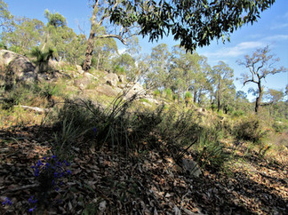 Back to the Schipp Road Walk - after detouring to visit Rocky Pool we walked back along Schipp Road. There is a small loop section of the Bibbulmun Track on the eastern side of Schipp Road (blue trail on map below). The loop starts north of the bridge crossing closest to Rocky Pools and emerges opposite where we came out on to Schipp Road south of the second bridge. The top section is clearly the main track as it winds up the hill past granite outcrops to the crest, where you can look down into the next valley. There is a sign post where the second part of the loop heads back down hill (don't miss it as you might end up in Albany!) This track is quite overgrown, rough and has not been maintained so this section wasn't particularly enjoyable. I can see why they have placed logs across the trail entrance to discourage entry. Having said that if you enter the lower trail there is a lovely creek crossing and an old bridge you can explore a few metres off Schipp Road which is worth the side trip!